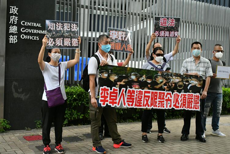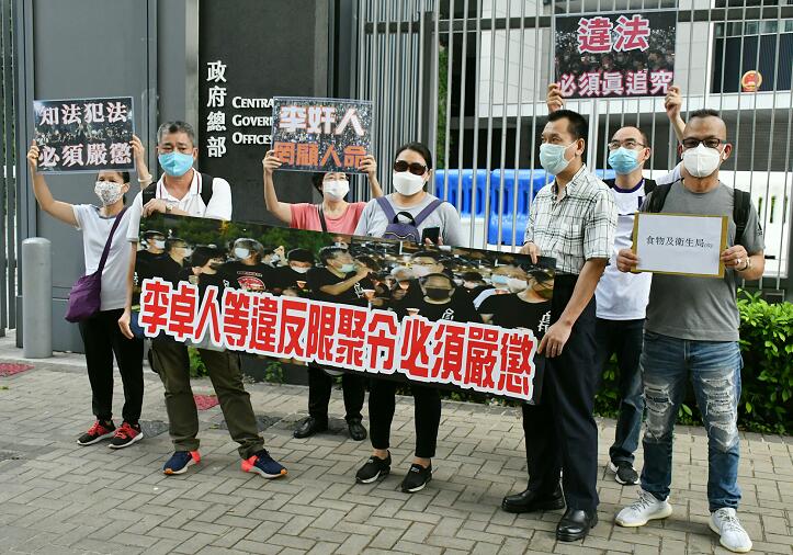 【香港商報网訊】記者林駿強報道:約10市民到政府總部外請願,抗議反對派李卓人等人昨晚在維園舉行上千人的集會,不顧市民的安全,公然違反限聚令。他們批評反對派為政治私利,置港人生死不顧,以一己之私禍港。