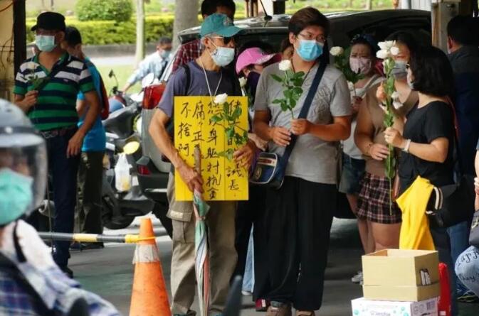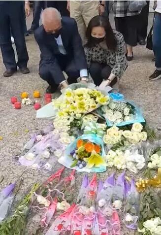 支持者献花给高雄市「议长」许昆源表达哀悼。