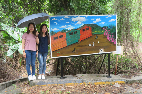 Cherri(左)及Yanki都很喜歡以鴨仔坑士多為背景的掛畫,她們在那裏繪畫,留下不少汗水。記者鄭玉君攝