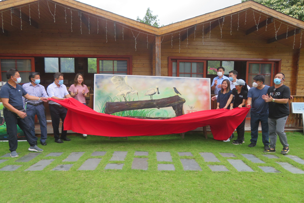 眾有心人在掛畫揭幕一刻非常興奮,右一為下白泥村村長鄭偉君。