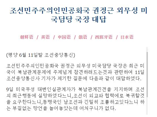 报道称,权正根指责美国一直采取双重姿态,“若朝韩关系有进展,就倍感妒忌,执意想要阻止;若朝韩关系恶化,就装出担忧的样子。我们对此已经看腻了。”