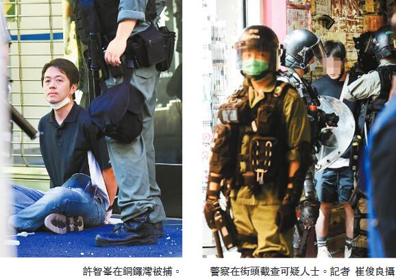 【香港商報网訊】記者周偉立報道:再有人於網上號召市民昨晚到港九及新界多處地點「示威」,警方事前調派大批防暴警察在多處宣稱舉行集會的地點如金鐘添馬公園等戒備,嚴防有人搞事,閒雜人等無法靠近政總一帶。昨晚,有大批「示威」人士分別在旺角及銅鑼灣等鬧市聚集,不斷高叫口號及唱歌,警方警告在場人士除或違限聚令,亦可能違反《公安條例》下的「參與未經批准集結罪」,並重申會果斷執法,及後警告無效,警方遂展開驅散行動,截查至少數百人,並拘捕數十人,包括立法會議員許智峰。