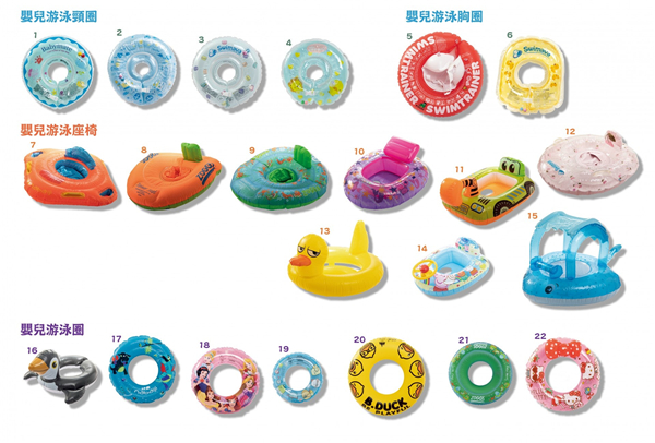 消委會測試22款兒童水上用品,包括7款兒童水泡、9款兒童游泳座椅、4款嬰兒游泳頸圈及2款兒童游泳胸圈。(消委會提供)