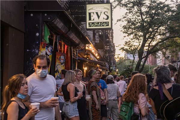 紐約曼哈頓一家酒吧外,人們大都沒有戴口罩,防疫意識薄弱。 路透社