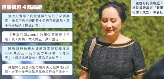 辯方認為,美方錯誤地聲稱香港匯豐銀行僅有低層級員工才知道華為與星通(Skycom)公司關係的性質,「但證據將顯示,任何不經匯豐高管層審查而對匯豐與星通或華為的關係所作的決定都是難以置信的。」