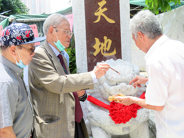 90歲的曾良,是其中一名為石獅子開光的村民,他頂猛烈陽光,小心翼翼地在風水師傅指引下完成。曾良說,家族在九華徑村至今已四五代,他在村出世,長大後搬往大埔居住,最少五六十年無住過祖居。然兒時記憶仍深印腦海,「舊時左邊全部都係海(未填海前村前是荔枝角灣),呢邊係田,山有羊仔、狐狸、箭豬……,十幾歲時見過黃永玉,同佢打招呼,堂細佬跟佢學過畫,我就無興趣喇!」他說,村裏從來未起過這麼漂亮的牌坊,落成是大件事,一定要回來參與。這天他偕同太太、兩名做醫生的兒子曾華德及曾華廣、一名兒媳出席盛會,女兒即藝員曾華倩則未有赴會。