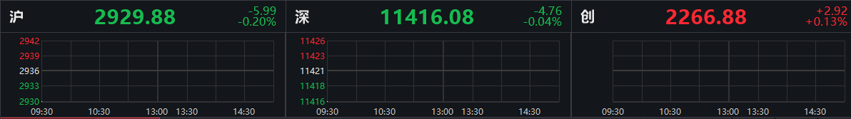 【香港商报网讯】截止今日开盘,沪指报2929.88点,跌0.20%;深成指报11416.08点,跌0.04%;创指报2266.88点,涨0.13%。从盘面上看,数字货币、军工、银行板块跌幅居前,医药板块、摩托车、钢铁板块涨幅居前。