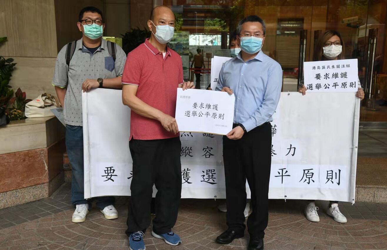 港島民生關注組向選管會代表交請願信 蔡啟文攝