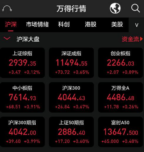 【香港商报网讯】沪指低开后维持弱势震荡,临近午盘,沪指拉升翻红。创业板指高开,早盘跳水翻绿。午后,三大股指全线翻红,深成指涨逾0.5%。截至收盘,沪指涨0.12%,深成指涨0.65%,创业板指涨0.09%。