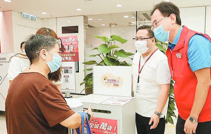 【香港商報网訊】記者周偉立報道:政府派發1萬元現金發放計劃昨開放登記,首日運作順暢,政府公布截至昨午5時,已有約200萬名市民透過參與計劃的21間銀行遞交電子登記,另有約8000名市民透過香港郵政網頁遞交電子登記表格。財政司司長陳茂波於網誌指,相信大部分市民可於8月底前獲發款項,希望透過「派錢」帶動整個社會的愉快消費氣氛,並為中小企與打工仔帶來收入改善的希望。