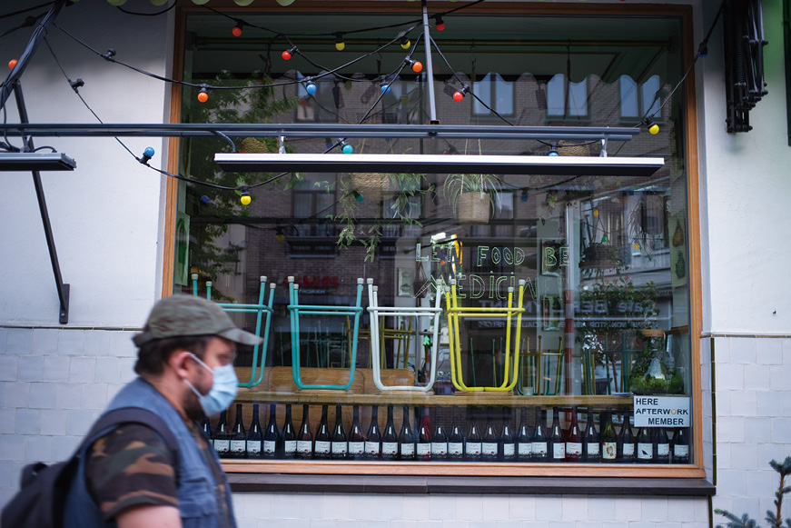 ▲在比利時布魯塞爾,一名戴口罩的男子經過一家關閉的餐館。(新華社圖片)