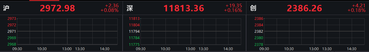 【香港商报网讯】两市集体高开,沪指涨0.08%,深成指涨0.16%,创业板指涨0.18%。