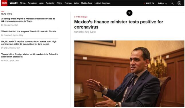 据环球网援引CNN报道,当地时间25日,墨西哥财政部长阿图罗·埃雷拉证实,其新冠病毒检测结果呈阳性。
