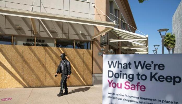 一位安保人员在美国北加州圣克拉拉县斯坦福购物中心巡逻。中新社