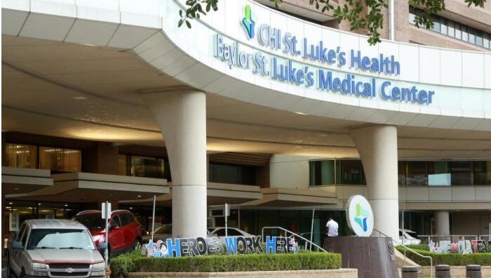 当地时间6月24日,美国休斯敦,得州医学中心会员单位——贝勒圣卢克医疗中心门口插着彩色字母牌「英雄们在此工作」。中新社