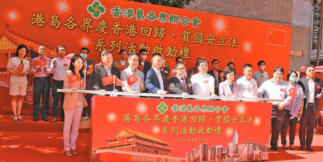 香港島各界聯合會昨日舉辦「港島各界慶香港回歸、賀國安立法」系列活動啟動禮。記者蔡啟文攝