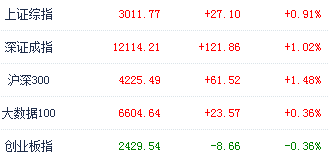 【香港商報網訊】7月1日消息,兩市高開,開盤後指數分化,滬指、深成指震盪拉升,創指表現較弱,盤面上,白酒板塊持續拉升,臨近上午收盤, 滬指持續拉升,站上3000點,為3月11日以來首次。盤面上,白酒股大漲,文化傳媒、無線耳機、半導體等概念活躍,兩市個股漲跌參半,賺錢效應較好。截至上午收盤,滬指報3011.77點,漲0.91%;深成指報12114.21點,漲1.02%;創指報2429.54點,跌0.36%。