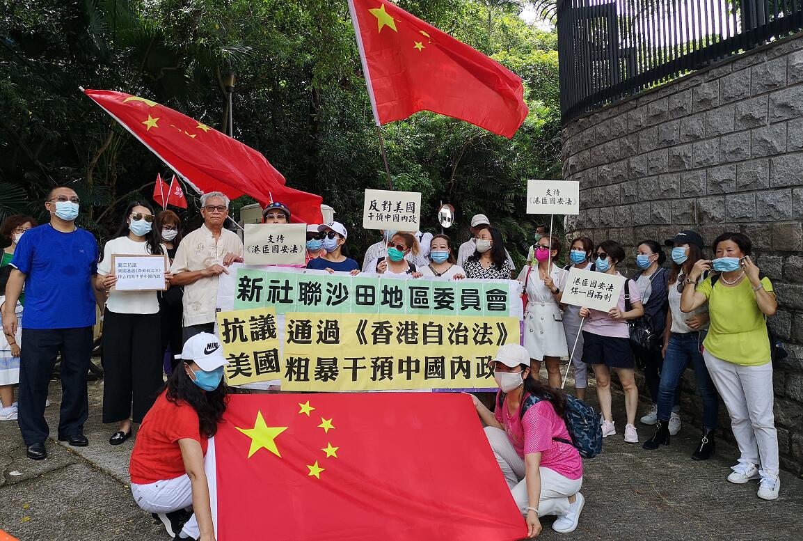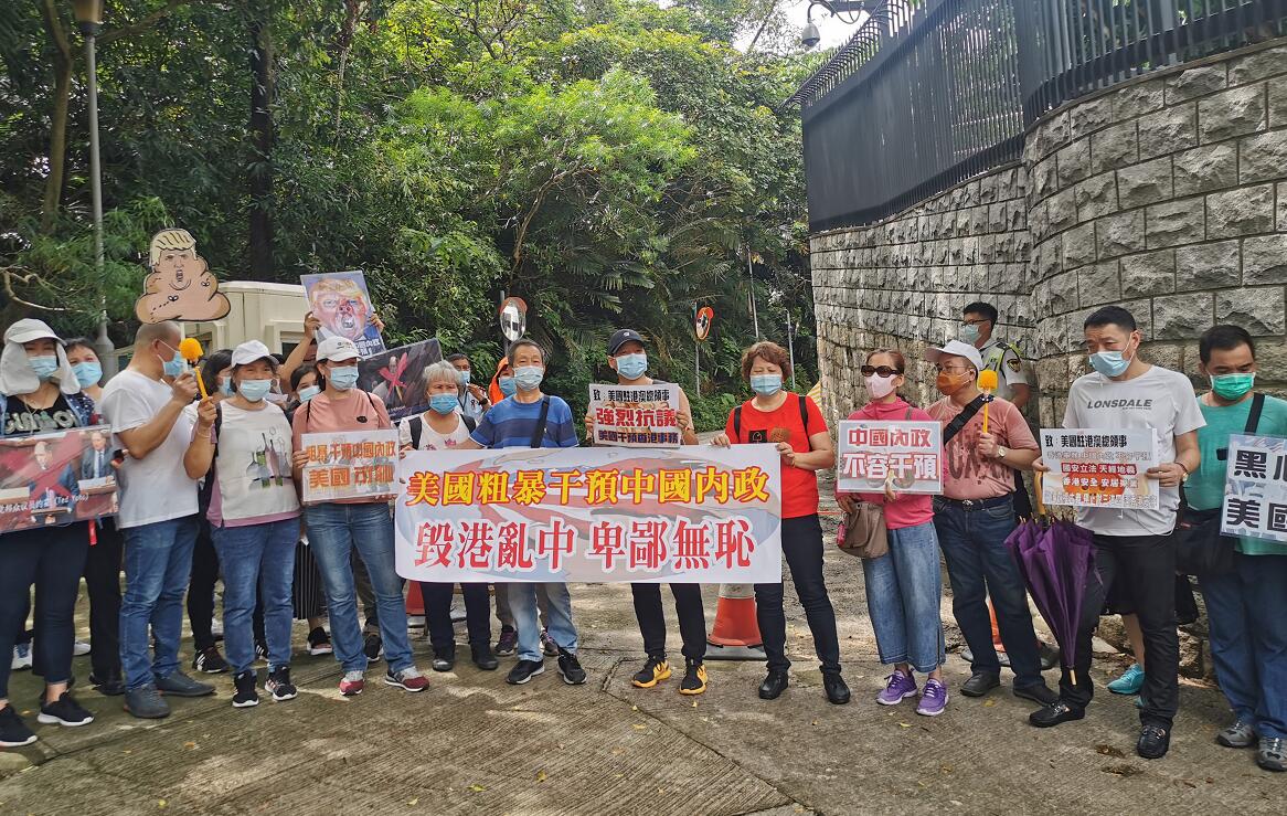 今日有香港市民到美领馆抗议,反对美眾議院通過所谓《香港自治法》,批美粗暴干涉中国内政,谴责美方双重标准。