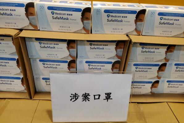 海關貿易管制處處長麥毓錦表示,接獲通知經調查後,在6月24日分別搜查2間位於觀塘及紅磡的貿易公司,拘捕2男2女,年齡介乎36歲至44歲,為2間供應商的董事及職員,現已保釋候查。涉案口罩是由一間本地貿易公司,供應給另一間本地貿易公司,再分批供給物流署,涉案口罩的商標與原本牌子的本地商標有明顯分別,但與有關牌子的內地商標一樣,相信容易混淆,涉案口罩亦非由包裝盒上列明的內地生產商製造。當中與原生產商口罩有4個差異之處,包括耳掛貼的焊貼位置、用料、鼻貼物料及口罩顏色。口罩樣本已運往化驗,菌落總數符合標準。