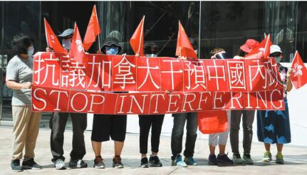 【香港商報网訊】記者葉珮渝報道:加拿大日前宣布暫停與香港之間的引渡協議,禁止向香港出口敏感軍事物品。的士司機從業員總會及「反黑金、反港獨關注組」成員昨分別帶同橫額及高舉標語,到加拿大駐香港總領事館外抗議,批評加拿大跟隨美國做法,又提出移民措施等制裁香港,完全不尊重中國,干涉香港事務。要求加拿大先管好自己國家,不要再指指點點。