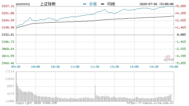 【香港商报网讯】两市高开高走,沪指接连突破3200点、3300点整数关口,并创2018年3月22日以来新高。截至收盘,沪指涨5.71%创近5年最大单日涨幅,深成指涨4.09%,创业板指涨2.72%。