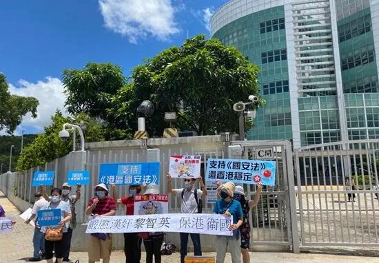 有市民自发到壹传媒大楼外集会,斥责黎智英出卖国家,荼毒香港年轻一代。(资料图片)