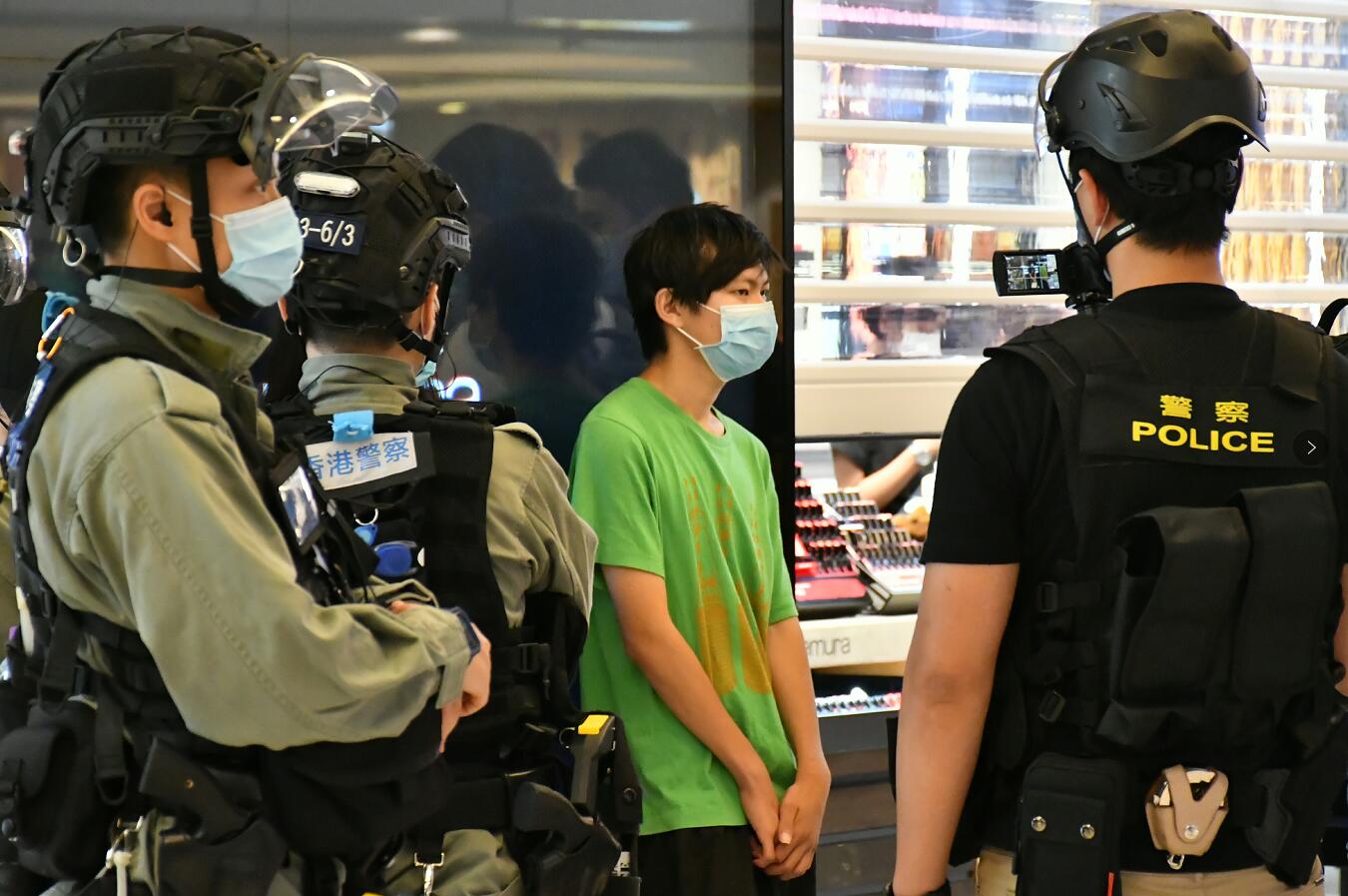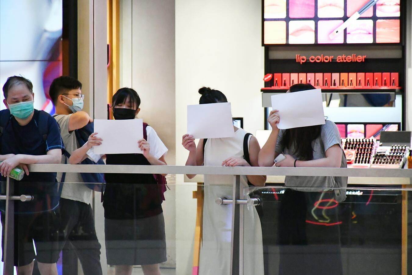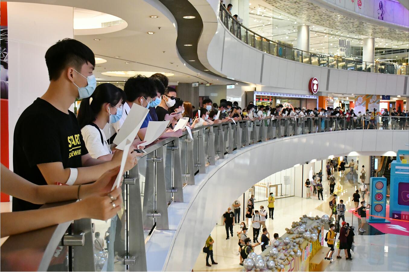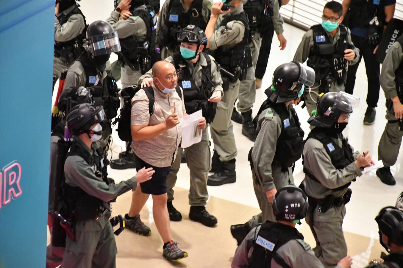 【香港商报网讯】记者冯瀚文摄影报道:有網民今日(6日)晚上6時許於觀塘apm商場發起非法集结,有約數十名市民於商場內聚集,並分散於各樓層,不知是否因為已經通過「國安法」關係,現場民眾未有一如以往高調於場內擺放政治文宣或旗幟,取而代之是部分人士手持白紙並間中仍然有人會高呼口號,包括「五大訴求,缺一不可」、「時代革命」等。約6時半大批防暴警進入商場,在商場中庭多次舉起黃旗警告在場人士,並拉起封鎖線,期間截查多名人士並帶走多人。