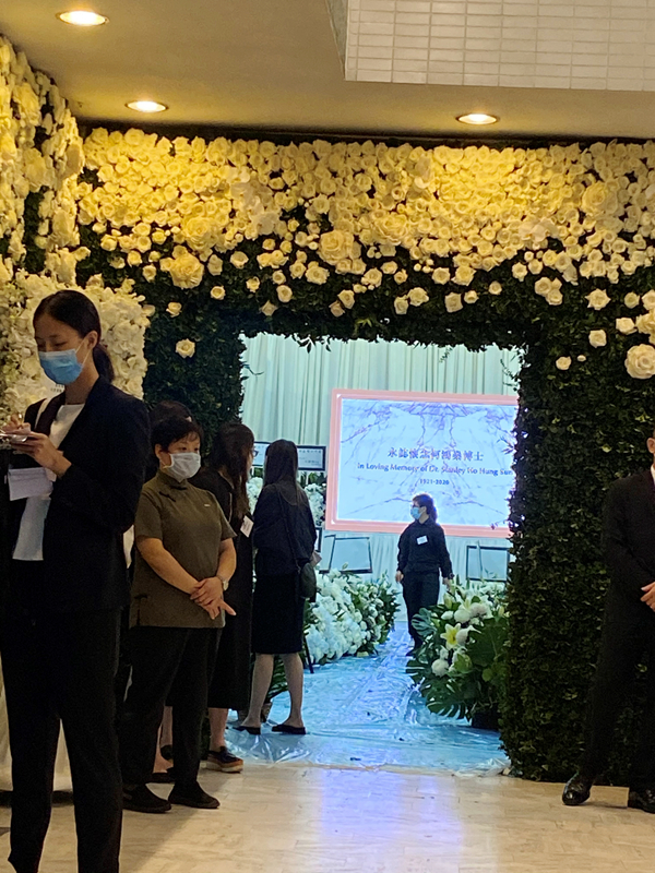 而在靈堂門外,就擺放了兩部自動體溫檢查機,何家額外聘請20多名保安在殯儀館外維持秩序,設立兩個記者區,前來採訪的中外記者近100人。