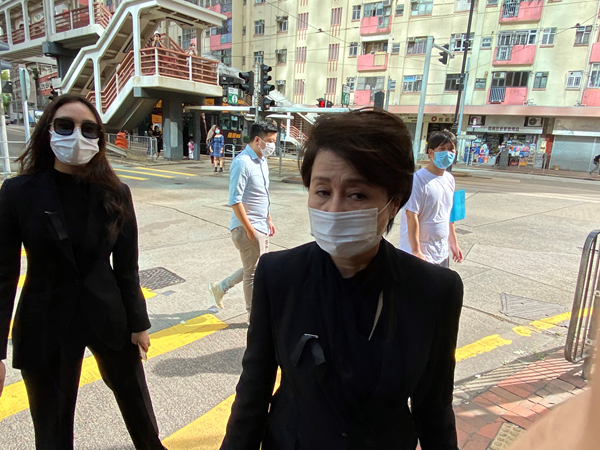 四太梁安琪和細女何超欣一身黑色喪服到場。