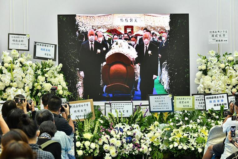 【香港商报网讯】「賭王」何鴻燊5月26日離世,終年98歲,今日下午大殮出殯,扶靈人士包括全國政協副主席董建華和何厚鏵、行政長官林鄭月娥、中央政府駐港聯絡辦副主任譚鐵牛、澳門經濟財政司司長李偉農,以及東亞銀行主席李國寶、合和實業主席胡應湘和港交所前主席李業廣。儀式過後「賭王」的靈柩將會暫放香港殯儀館內,再擇吉日下葬於摩星嶺的昭遠墳場。