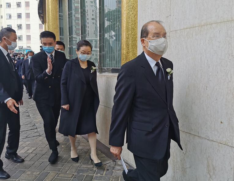随後,已故全國人大政協霍英東兒子霍震霆、霍震寰及其兒子,澳博副主席蘇樹輝等到场。上午11時30分许,政制及內地事務局局長曾國衞到達殯儀館。