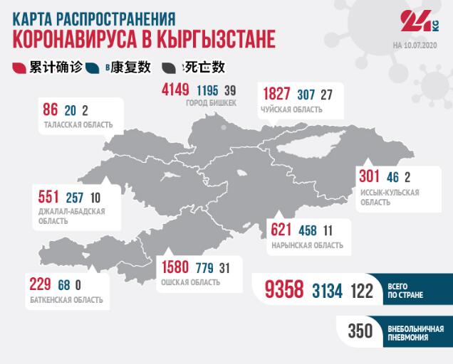 吉尔吉斯斯坦累计122例死于新冠肺炎,另有350例死于肺炎。图自:24.kg网站