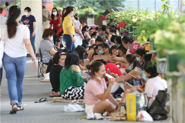 本港新增 30 宗本地個案,其中包括 2 名外傭,但昨日仍有大批外傭聚集中環。 中通社