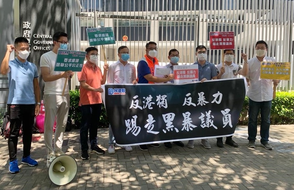 民建聯副秘書長黎榮浩昨早聯同民建聯九龍東團隊一行約10人,於政府總部門外請願,譴責現時不少議員,雖有簽署確認書,卻公然做出違反《基本法》的行為,如有人公然抹黑國家、違反「一國兩制」、縱容暴力違法,更宣揚「港獨」,過去於選舉提名期,有關部門曾因參選人政治表態中涉及不真誠擁護《基本法》等因素取消其參選資格,但當有現任議員公然違反確認書後,卻未有任何懲處,不少「黑暴」議員辦事處仍然掛出違法口號,甚至以辦事處作為反國家宣傳站。