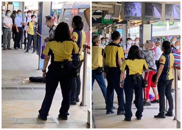 今早8時35分,港鐵東鐵線大圍站往紅磡方向月台,一名男子沒有佩戴口罩,港鐵職員上前勸喻時,男子不作理會,登上列車,職員只能尾隨上車,至九龍塘站時,再有港鐵職員上車協助。男子情緒激動一度落車,在九龍塘站月台發難,揮舞長棍及擲玻璃樽後,再次登上列車,於紅磡站落車,警員接報趕至調查,截獲涉案男子。