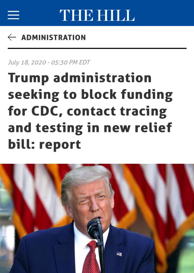 【香港商报网讯】据华盛顿邮报周六消息,知情人士透露,特朗普政府试图阻止向美国疾病控制与预防中心(CDC)提供数十亿美元资金,其中包括用于追踪新冠接触者、额外检测和其他新冠病毒缓解等措施特朗普反对在援助法案中为各州的新冠病毒测试提供资金。