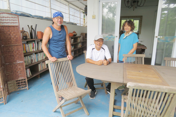 在梅窩海邊的青鳥居很大,達1萬呎,一進門是前園,往前走一點是Danny的地中海面貌居庭,往上一點是另一間屋,旁邊是大片農地。這間上一點的屋原想租出,甚至做民宿,但Danny的家人不贊成,大家傾談下覺得青鳥居有的是地方,不如搞些活動吧。