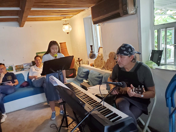 3 月舉行的音樂活動,由音樂人Danny(右)為參加者伴奏。蔡文元提供圖片