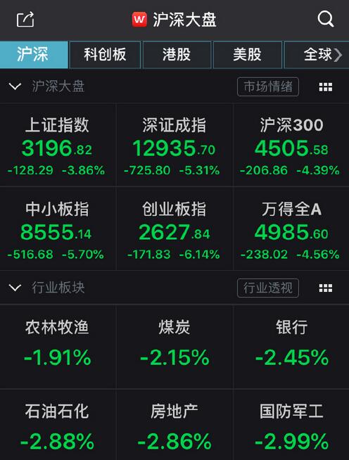 【香港商报网讯】7月23日,市场避险情绪升温,A股三大股今日集体走低,创业板指跌逾6%,沪指跌近4%,两市个股普跌。截至收盘,沪指跌3.86%,报3196.77点;创业板指跌6.14%,报2627.84点;深成指跌5.31%,报12935.70点。今日,沪深两市成交额突破1万亿元,已连续十七个交易日突破万亿元,北向资金净卖出超160亿元,其中沪股通净流出92.99亿元,深股通净流出70.58亿元。