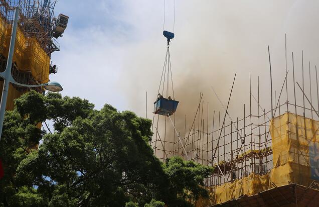 現場消息稱,在火警發生期間一名地盤工人被困在天秤上,其他工友見狀開動另一台吊臂,吊運一個貨斗至被困工人附近,被困工人爬進貨斗逃生,過程驚險萬分。