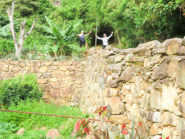 由入口走到木易叔叔的家大約要兩分鐘,這時發覺他家後方有一道L形巨牆,足足有兩層樓高,這面牆由大石組成,看樣子久歷風霜,一邊牆身較厚,頂部種了木瓜等植物。屋前下方是一個由石頭砌成的平台,看樣子還未完工,平台上鋪滿大小小的石頭。