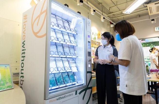此外,新世界早前推出全港首創的 「自助口罩提取計劃」,自五月起分兩階段與 6間非牟利機構合作,於轄下的 37間指定中心設置「自助口罩提取機」, 並透過有關機構向預先登 記的基層及弱勢社群派發輕觸式「口罩提取卡」,讓他們每星期憑卡到 「自助口罩提取機」 獲取新世界本地生產的1包共5個口罩。