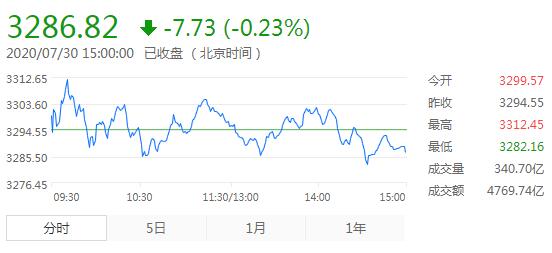 截至今日收盘,沪指跌0.23%,报3286.82点,成交额4769.74亿元;深成指跌0.67%,报13466.85点,成交6167.87亿元;创指跌0.86%,报2743.63点。
