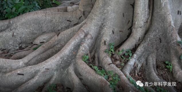 就在游人们乘凉的大榕树下面,我们看到惊人的一幕。这些毛虫成堆隐藏在树缝的阴影中,通体棕黑色,覆盖着长毛,还有两簇鬃毛。我们见过毛毛虫,却从未见过这么的多毛毛虫聚在一起,它们是谁?它们为什么成群结队?它们对树木会造成伤害吗?