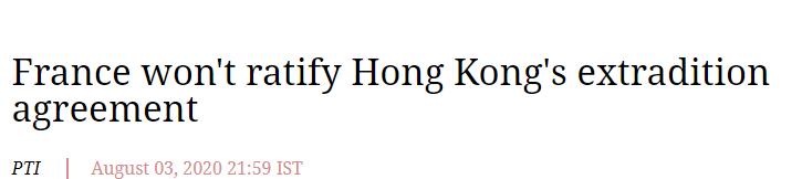 综合外媒报道,法國外交部8月3日宣布,法國因應《香港國安法》,決定暫停與香港的引渡協議。