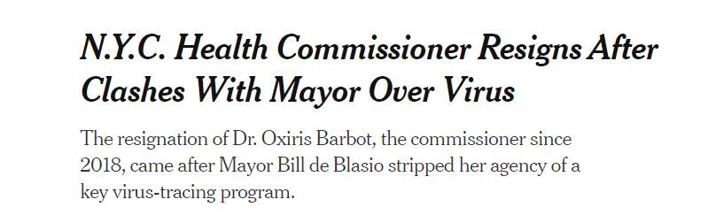 据纽约时报报道,当地时间8月4日,2018年以来担任纽约市卫生专员的奥西里斯·巴博特博士辞职,原因是她对市长白思豪处理疫情的方式感到「严重失望」。