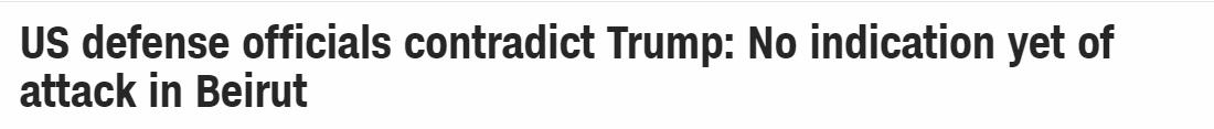 在当被问及如何得出这一结论时,特朗普说道:这看起来像是爆炸,我见了一些我们的军事将领,他们觉得这似乎不像是工业制造方面的爆炸事故,他们认为可能是袭击,是某种炸弹所导致。