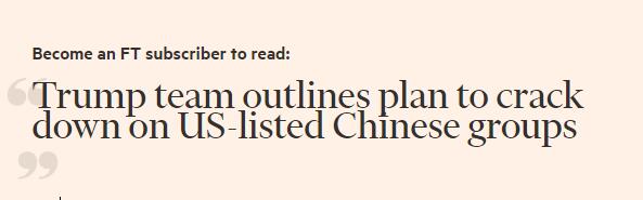 【香港商报网讯】据英国《金融时报》网站8月7日报道,特朗普政府建議发布新规,禁止不符合美國會計準則的中國公司在美上市;此举很有可能对已在美国上市的中国公司产生影响。