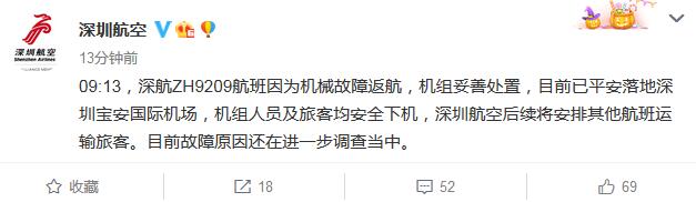据深圳航空通报,航班在今天早上9时13分已经平安返航深圳宝安国际机场,返航途中由机组人员正常控制飞机,落地后机组人员及乘客均无人员受伤,深圳航空后续将安排其他航班输运旅客。目前事故原因还在进一步调查当中。