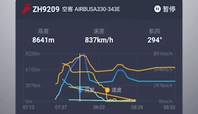 深航ZH9209航班更换编号为B-1036空客A330飞机继续执行任务,预计14:15抵达西安。